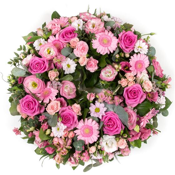 Soft pink tones and wispy foliage are used to create a beautiful eternal ring.